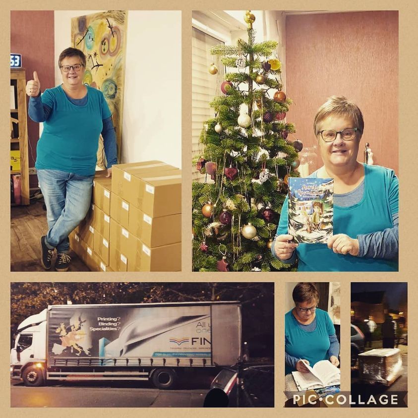 Heute morgen gegen halb sieben rollte der LKW der Druckerei Drusala vor. Ich kann gar nicht in Worten ausdrücken, was in mir vorging. Schnell die Schuhe angezogen, halfen wir dem Fahrer beim Abladen der 27 Kartons. Nach ca. 10 Minuten waren alle 750 Exemplare , die wirklich sauber und ordentlich verpackt waren in unserem Wohnzimmer an ihrem Platz. Danach öffnete ich den ersten Karton und DER Augenblick war gekommen. Ich hielt mein erstes Autorenwerk in meinen Händen. Glücksgefühle machten sich breit, Tränen liefen über mein Gesicht und ich konnte es immer noch nicht glauben.