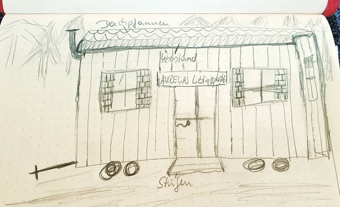 Auch im Urlaub haben Autoren zu tun, wenn das Erzählband pünktlich fertig werden soll. Gestern habe ich für @sabine_marie_illustration die Ideenliste zur Illustration der einzelnen Stories erstellt. Und damit sie sich vorstellen kann, wie ich von Beginn an Aurelias Bauwagen- häuschen vor mir sehe, habe ich mal eben ne Skizze von diesem gezeichnet. Was nun daraus wird, da darf ich mich selbst überraschen lassen. Auch mit Sabine, genau wie mit @christel_netuschil_autorin, arbeiten wir beide im Team. Das macht echt Spaß.